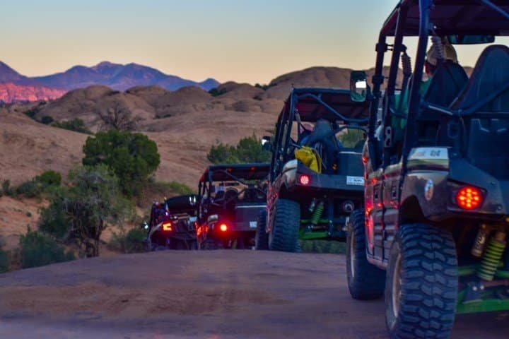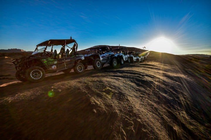 The tour leaves right from our office at 97 South Main, and a few minutes later you are on some of Moab’s famous 4×4 Trails following the guide across the sand and slick rock.