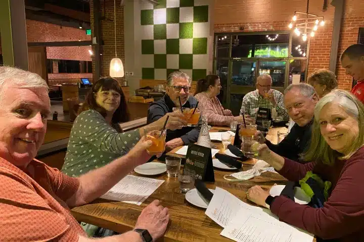 We leisurely and safely cover 1 mile strolling around the downtown Square area, spending a sufficient amount of time at each stop. Wear comfy shoes, come thirsty, and get ready to have an exciting evening! While we serve food tastings alongside the drinks, we end the evening near the center of the Square, so you can enjoy dinner after if desired.